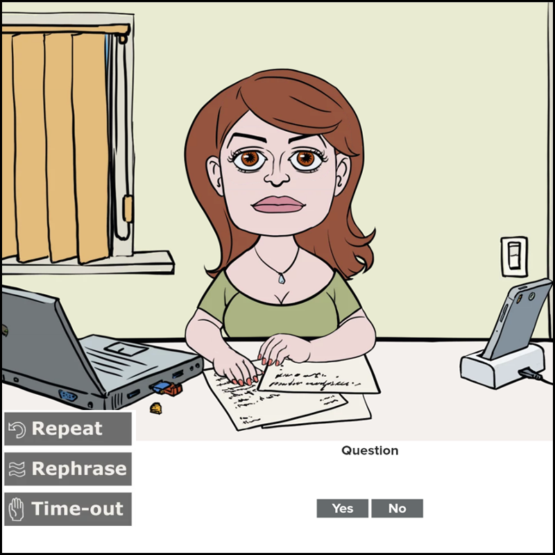 In this game, the player simulates a job interview where he has to go through several stages with different stress levels.
